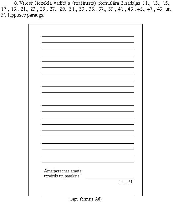 8.1. dzelzceļa satiksmes drošību reglamentējošo normatīvo aktu prasību zināšanas, kas nepieciešamas dienesta pienākumu veikšanai;