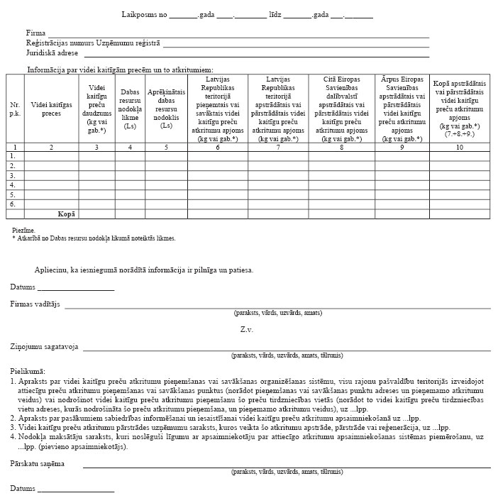 Pārskats par videi kaitīgu preču atkritumu apsaimniekošanu un aprēķināto dabas resursu nodokli