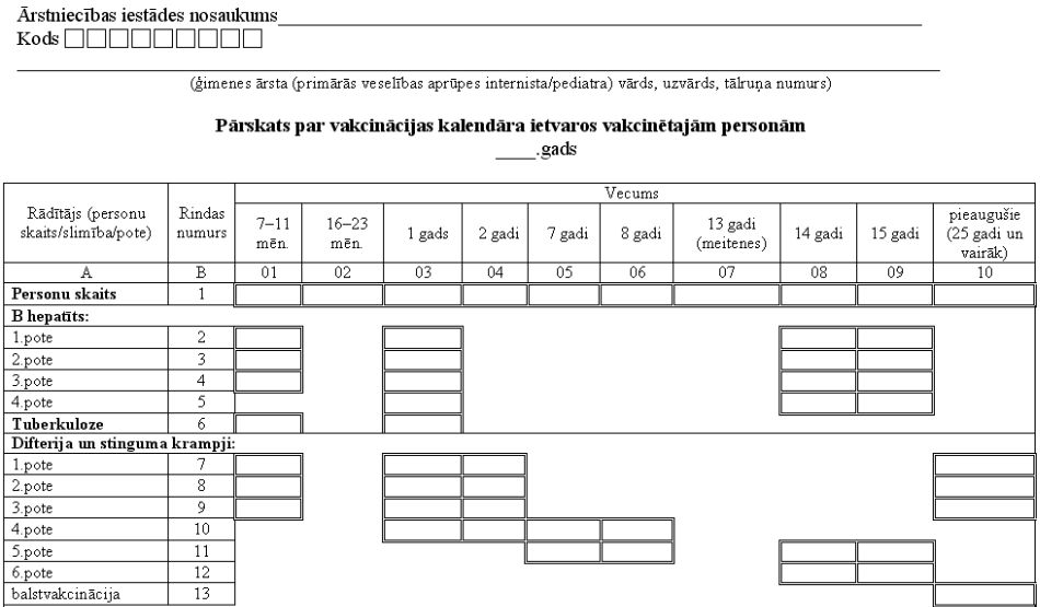 10.3.2. līdz katra gada 10.janvārim (par iepriekšējo gadu) — nozares statistikas pārskatu par vakcinācijas kalendāra ietvaros vakcinētajām personām (5.pielikums)."