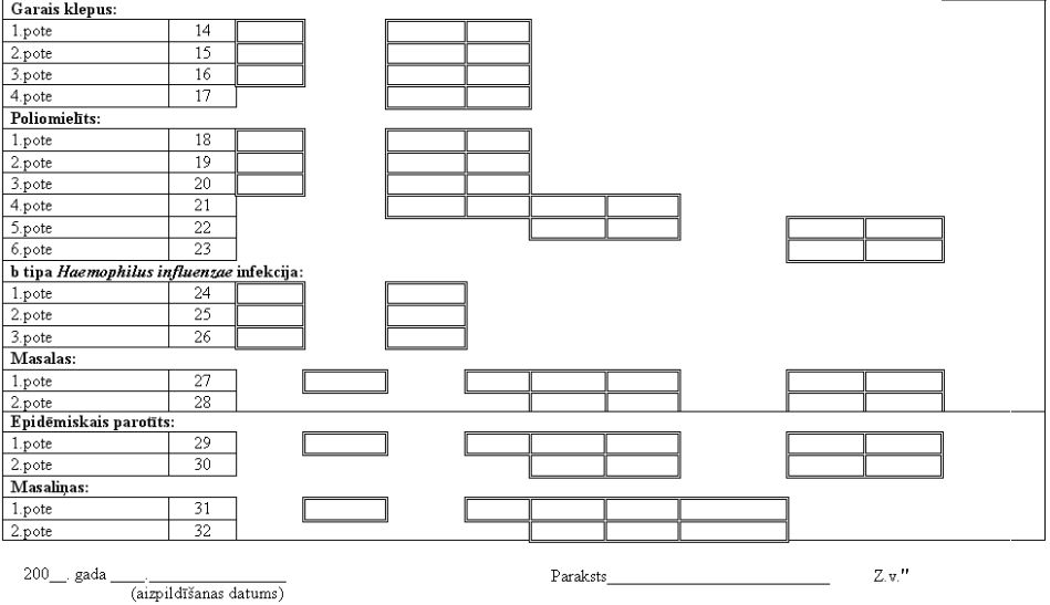 Difterija, stinguma krampji un poliomielīts, masalas, epidēmiskais parotīts un masaliņas |