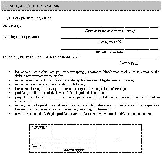 12.1. latviešu valodā aizpildītas iesnieguma veidlapas (pielikums);