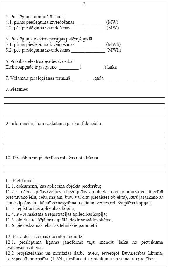 2. Pieslēguma ierīkošanai galalietotājs iesniedz elektroenerģijas pārvades sistēmas operatoram (turpmāk - sistēmas operators) šādus dokumentus: