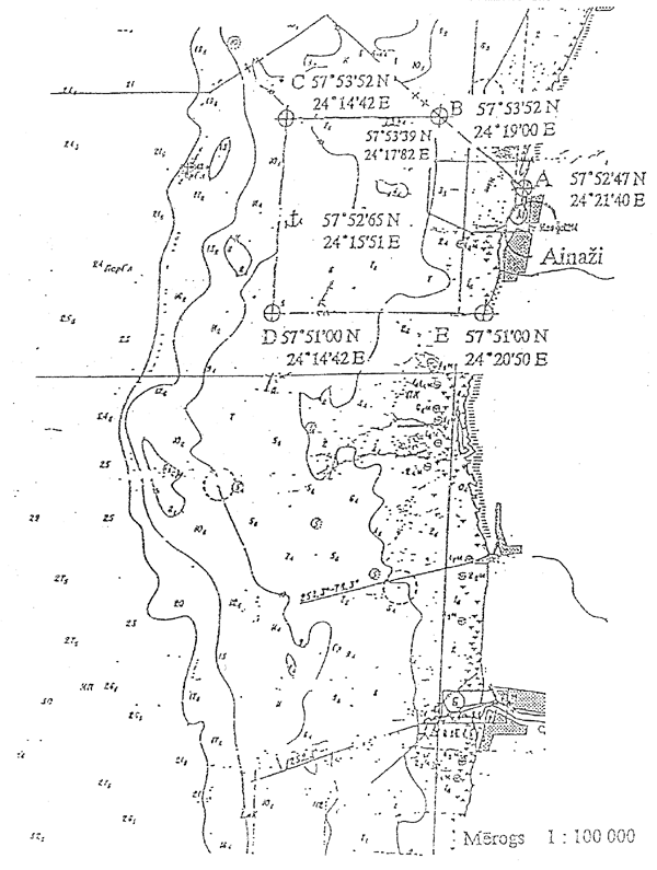2. Ainažu ostas ārējā reida koordinātas ir šādas: