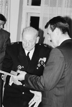 Diemžēl mūsu vidū Latvijas laika Kara skolu absolvējušo virsnieku paliek arvien mazāk. Sakarā ar mūsu armijas astoņdesmito gadskārtu ministrs un NBS komandieris apbalvo vairākus vecos virsniekus. Apbalvoto vidū — arī leģendārais zemūdens "Ronis" komandieris, komandkapteinis Hugo Legzdiņš, kurš pēc dažām dienām atzīmēs savu 96. dzimšanas dienu. Hugo Legzdiņš saka: