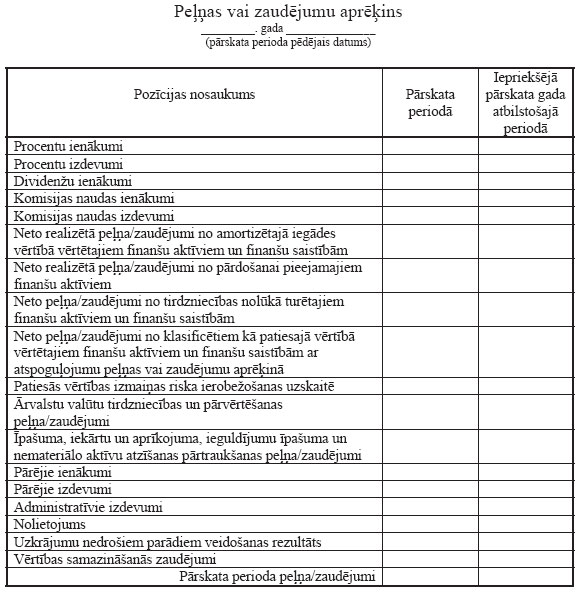 11. Bilances un peļņas vai zaudējumu aprēķina posteņu saturs un vērtēšanas noteikumi atbilst Finanšu un kapitāla tirgus komisijas (tālāk tekstā — Komisija) apstiprinātajos “Banku, ieguldījumu brokeru sabiedrību un ieguldījumu pārvaldes sabiedrību gada pārskata un konsolidētā gada pārskata sagatavošanas noteikumos” noteiktajām prasībām. Bilances un peļņas vai zaudējumu aprēķina posteņu izkārtojums norādīts 1. un 2.pielikumā.