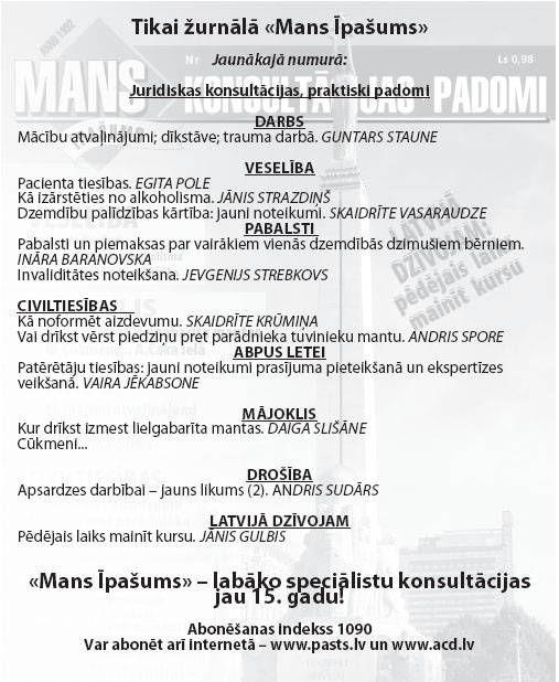 Kontaktinformācija pa tālr. 7062101, 7062104.