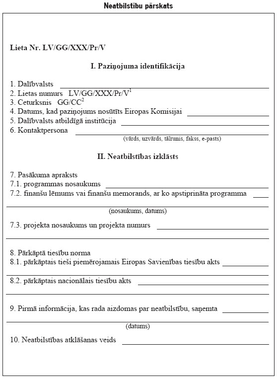 IV. Informācijas sniegšana, ja neatbilstības nav konstatētas