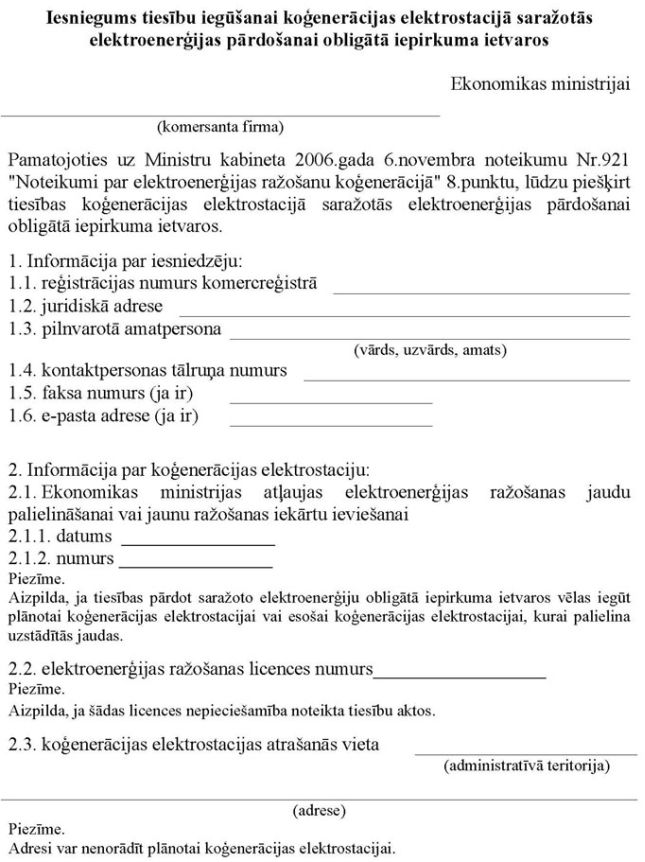 1.2. koģenerācijas elektrostacijā ražotās elektroenerģijas obligātā iepirkuma un tā uzraudzības kārtību;