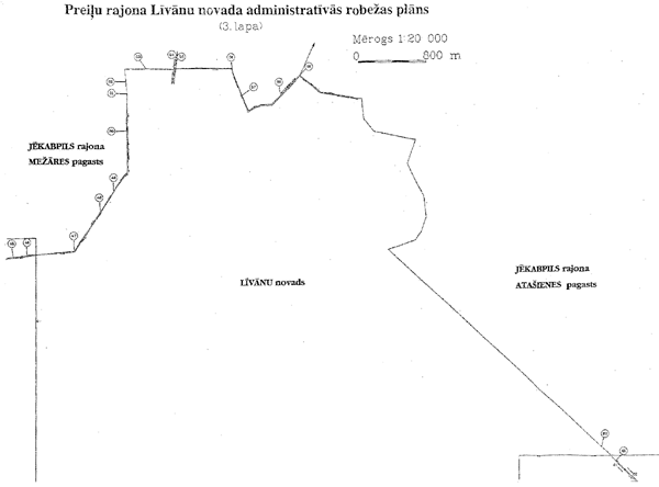 | 19 | 20 | Dienvidaustrumi | 0,2 | Pa Līvānu novada un Jēkabpils rajona Vīpes pagasta saimniecības "Ezermuiža" (kadastra Nr.56960060021) robežu | Jēkabpils rajona Vīpes pagasts |