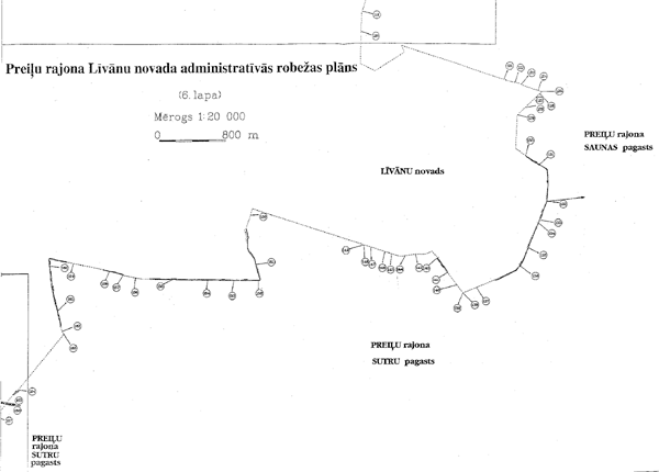 | 152 | 153 | Rietumi | 0,3 | Pa Līvānu novada un Preiļu rajona Sutru pagasta Leones Baško saimniecības (kadastra Nr.76820010068) robežu (pa novadgrāvja vidu) | Preiļu rajona Sutru pagasts | Leones Baško saimniecība (kadastra Nr.76820010068) |