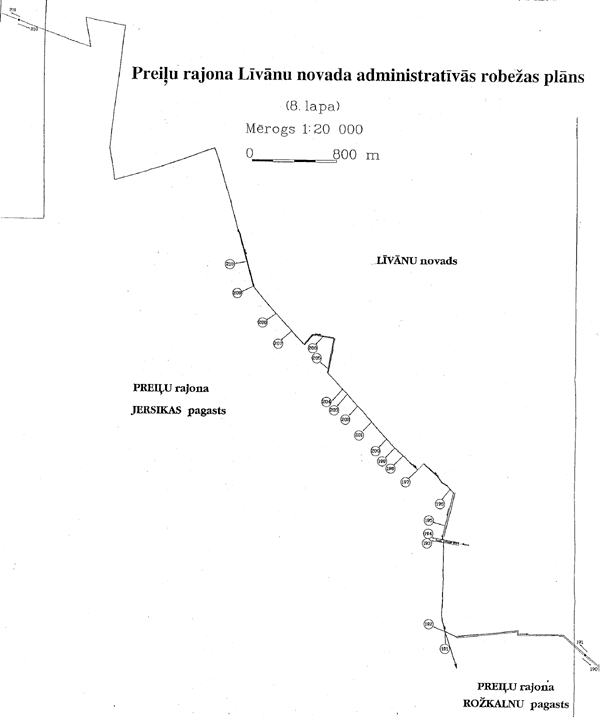 | 223 | 224 | Dienvidrietumi Dienvidi Dienvidrietumi | 0,7 | Pa Līvānu pilsētas un Līvānu virsmežniecības Līvānu mežniecības 89.meža kvartāla robežu (pa novadgrāvja vidu un pa sauszemi) | Preiļu rajona Jersikas pagasts | Līvānu virsmežniecība |