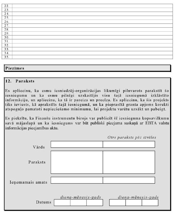 20.3.2. projekta iesnieguma veidlapas (1.pielikums) 11.punktā projekta iesniedzēja minētie pielikumi. Ja pielikumā pievienotie dokumenti ir liela apjoma, angļu valodā iesniedz tikai to kopsavilkumus, kas satur būtiskāko informāciju;