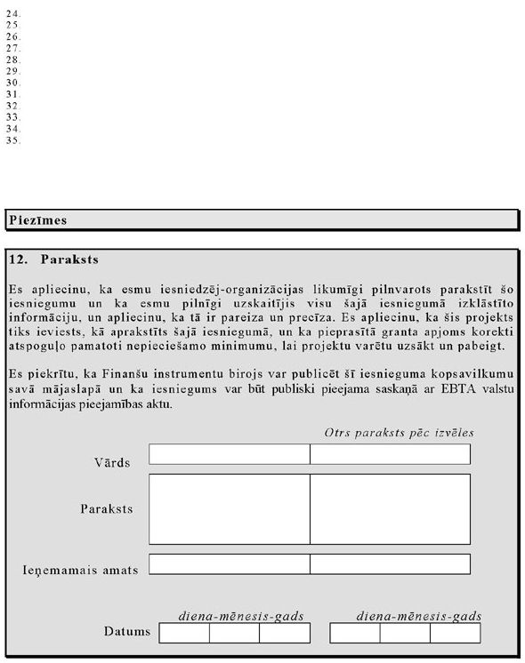 Esmu izlasījis līgumslēdzējā institūcijā iesniegtā projekta iesniegumu un piekrītu tā saturam. Apņemos ievērot labas partnerības principus. Ja projekta iesniegums būs apstiprināts līdzfinansējuma saņemšanai no finanšu instrumentiem, garantēju finansējumu šādā apmērā: ______ eiro, tas ir, _____ % no kopējām projekta attiecināmajām izmaksām.