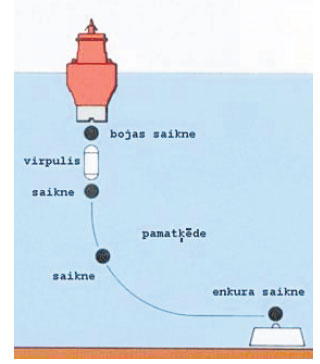 3.8. boja - speciālas konstrukcijas un krāsojuma peldošais navigācijas līdzeklis, kas kalpo kuģu ceļu, jūras vai ostu kanālu, enkurvietu, kuģošanai bīstamu šķēršļu un citu jūras navigācijai bīstamu vietu iezīmēšanai;