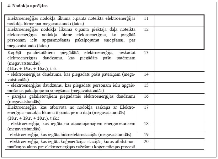 Noteikumi par elektroenerģijas nodokļa deklarācijas veidlapu un tās aizpildīšanas kārtību