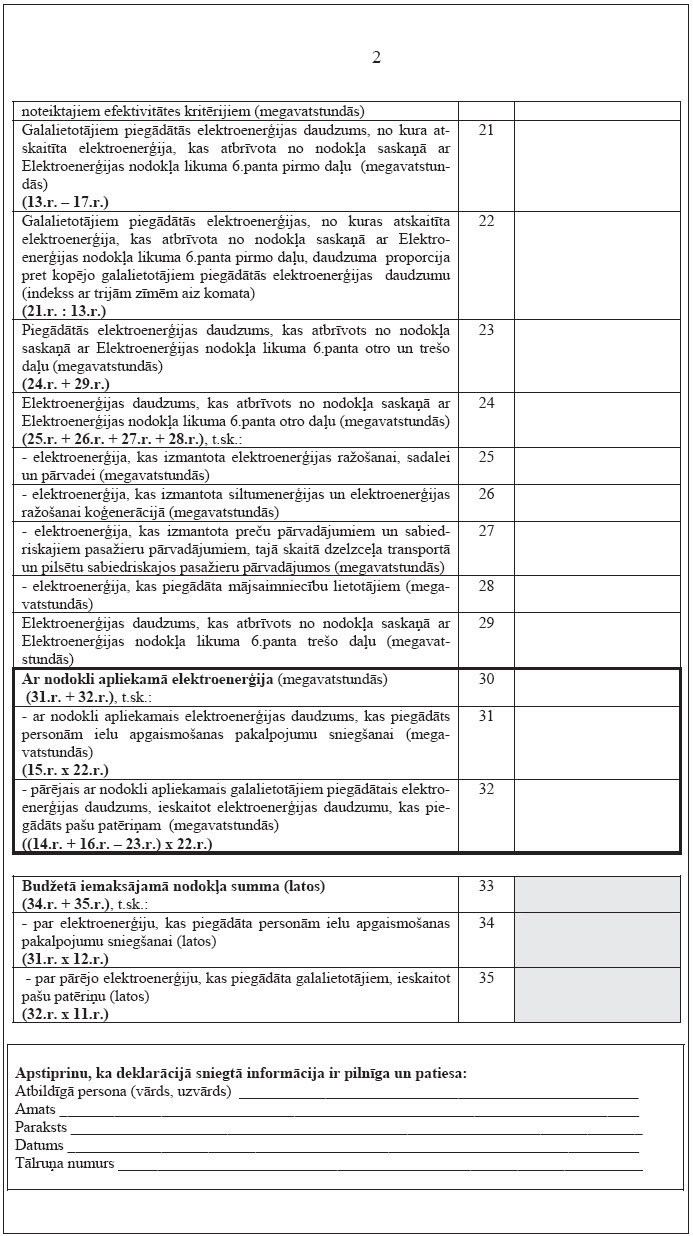 2. Elektroenerģijas daudzumu elektroenerģijas nodokļa deklarācijā norāda megavatstundās ar precizitāti divas zīmes aiz komata.