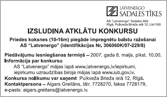 3.Atklātā konkursa nolikums būs pieejams, sākot no 2007. gada 3. marta. To var saņemt PAS “Daugavpils siltumtīkli” 18. Novembra ielā 4, Daugavpilī, no plkst. 8 līdz 16. Tālr. 65407533, fakss 65407555.