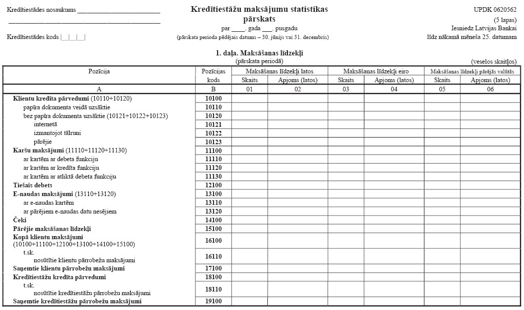 16. Pārskata sniedzēja kredītiestāde reizi pusgadā sagatavo pārskatu saskaņā ar veidlapu UPDK 0620562 (1. pielikums).