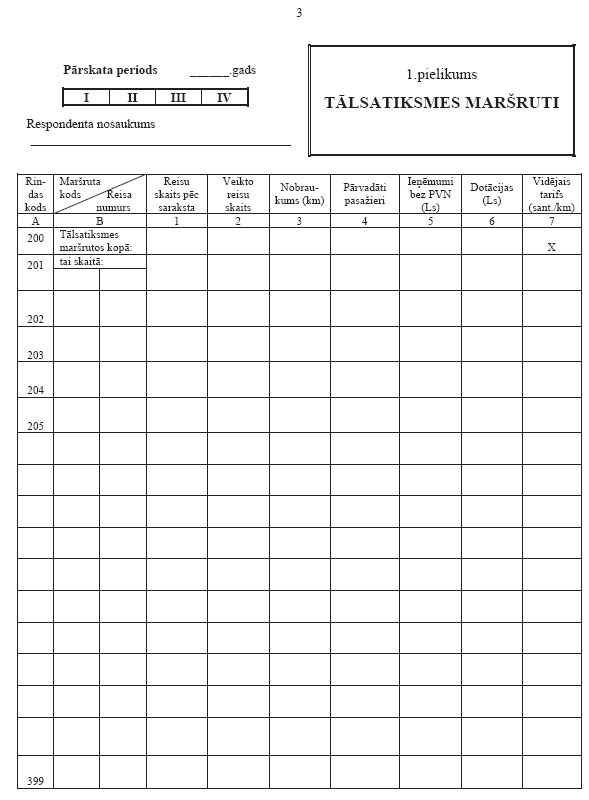 III. Pārskata 1.pielikuma "Tālsatiksmes maršruti" aizpildīšana