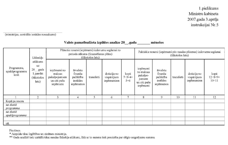 3.1. “Valsts pamatbudžeta izpildes analīze 20__.gada __ mēnešos” (1.pielikums);