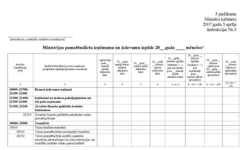 3.3. “Ministrijas pamatbudžeta ieņēmumu un izdevumu izpilde 20__.gada __ mēnešos” (3.pielikums);