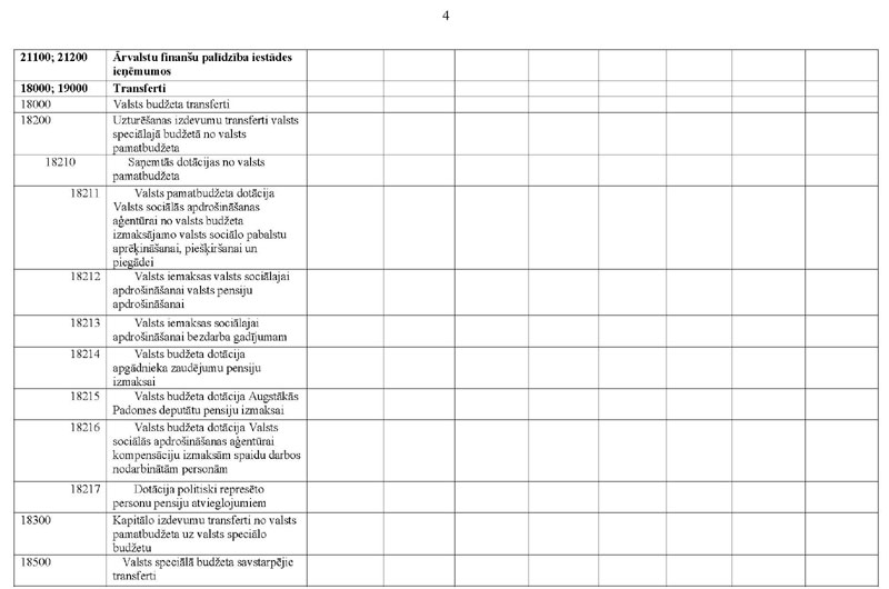 18. Veidlapā “Speciālā budžeta ieņēmumu un izdevumu izpilde 20__.gada ___mēnešos” (4.pielikums) ailes “Iepriekšējā gada __mēnešu izpilde” pārskatā par 2007.gada trim mēnešiem, pusgadu, deviņiem mēnešiem un gadu budžeta izpildes analīzes rādītājus norāda rindām “Ieņēmumi – kopā”, “Nodokļu ieņēmumi”, “Nenodokļu ieņēmumi”, “Ieņēmumi no maksas pakalpojumiem un citi pašu ieņēmumi”, “Transferti”, “Izdevumi – kopā”, “Uzturēšanas izdevumi” un “Kapitālie izdevumi”.