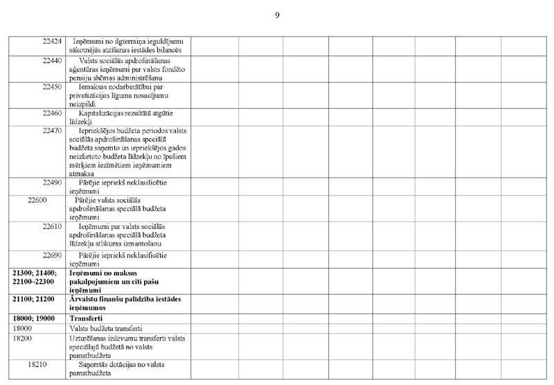 3.9. “Valsts speciālā budžeta sociālo pabalstu un iemaksu valsts pensiju apdrošināšanai un apdrošināšanai bezdarba gadījumā izpilde 20___.gada ____mēnešos” (9.pielikums). Šajā veidlapā minēto informāciju sniedz Labklājības ministrija līdz pārskata periodam sekojošā mēneša trīsdesmitajam datumam.