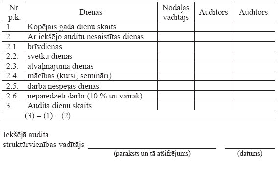 34. Nosakot pieejamo dienu skaitu, ņem vērā brīvdienas, svētku dienas, atvaļinājumus, mācības un citus ar auditu nesaistītus darbus (3.pielikums).