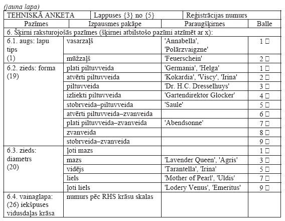 5.1. minimālais pārbaudāmā materiāla daudzums ir seši stādi. Katram stādam ir vismaz trīs ziedpumpuri, un tas ir potēts uz praksē plaši lietota potcelma (piemēram, 'Cunningham's White') vai arī ir patsaknis;