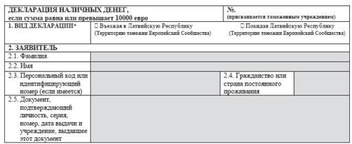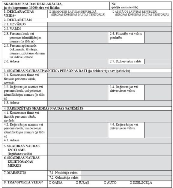 Deklarācija skaidras naudas deklarēšanai uz valsts robežas