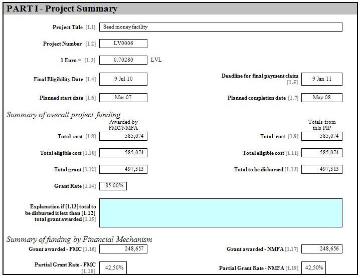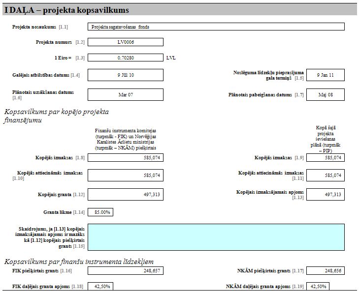 Fonda mērķis ir atbalstīt individuālo projektu ideju izstrādi Eiropas Ekonomikas zonas finanšu instrumenta un Norvēģijas valdības divpusējā finanšu instrumenta prioritārajās sfērās un jaunu partnerattiecību nodibināšanu ar mērķi veidot jaunus projektus, Fonda vispārējais mērķis ir stiprināt projektu iesniegumu kvalitāti prioritārajās sfērās un atvieglot pieeju finanšu instrumentu piedāvātajiem līdzekļiem. Atsauce ir pamatota ar 2006.gada 24.jūlija iesniegumu un 2006.gada 4.septembra un 2006.gada 19.septembra.saraksti ar Nacionālo vadošo iestādi