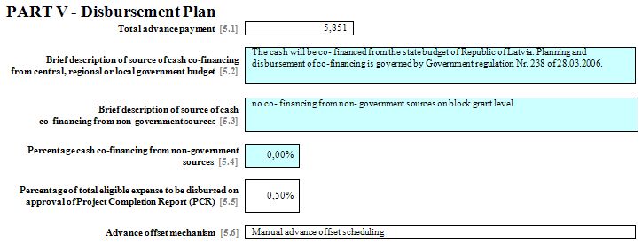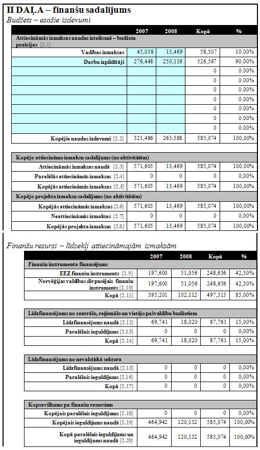 Latvijas valdība nodrošina līdzfinansējumu vismaz 15 procentu apmērā no paredzētajām projekta attiecināmajām izmaksām.