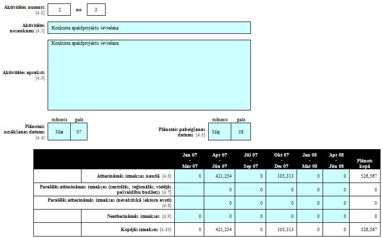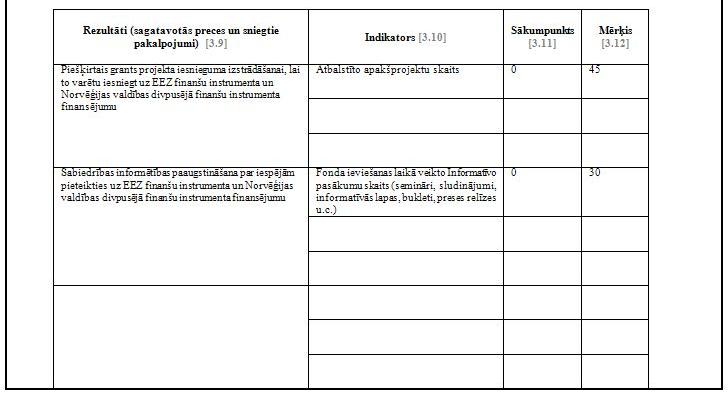 Pabeigtam Fondam ir jāietver šādas aktivitātes un rezultāti: