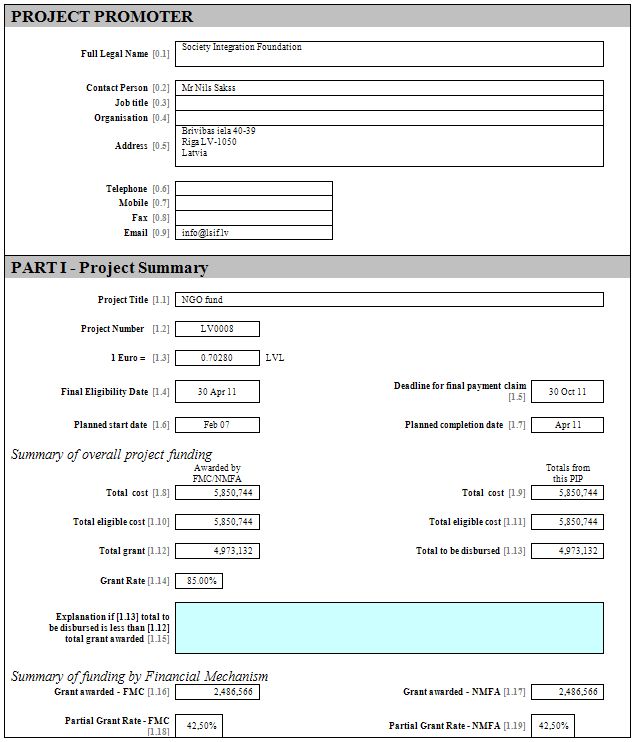 Fonda mērķis ir sniegt finansiālu atbalstu nevalstisko organizāciju (šā granta līguma izpratnē nevalstiskās organizācijas noteiktas granta līguma Fonda struktūras (3.pielikums) 1.2.punktā Attiecināmie iesniedzēji) aktivitātēm demokrātijas un pilsoniskās sabiedrības attīstības jomās, stiprināt to nevalstisko organizāciju kapacitāti, kuras atbalsta EEZ finanšu instrumenta un Norvēģijas valdības divpusējā finanšu instrumenta prioritātes, un atbalstīt tās nevalstiskās organizācijas, kuras izstrādājušas projektus EEZ finanšu instrumenta un Norvēģijas valdības divpusējā finanšu instrumenta prioritātēs, ar vispārēju mērķi stiprināt pilsonisko sabiedrību Latvijā. Atsauce ir pamatota ar 2006.gada 27.jūlija iesniegumu un 2006.gada 8.septembra un 2006.gada 21.septembra.saraksti ar Nacionālo vadošo iestādi.