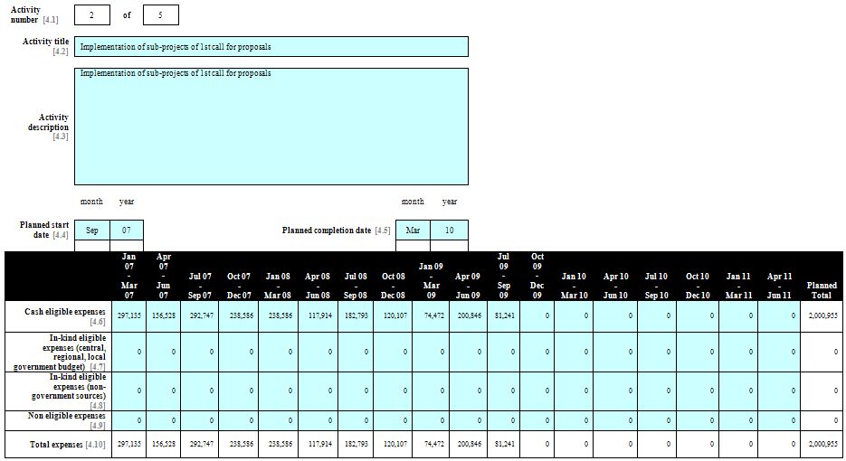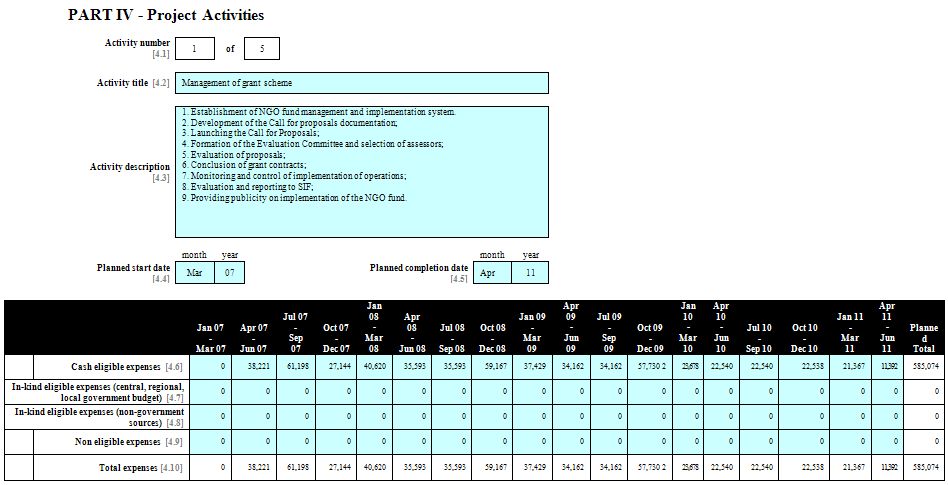- NGO activity support measure, providing support for regular NGO activities in accordance with NGO long term action plans and annual work programmes;