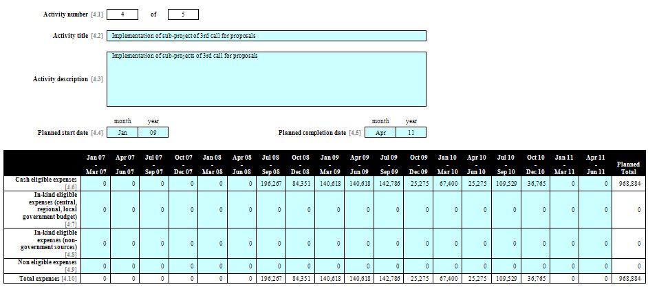 Total indicative amount that is available within the framework of this program is 40% of total grant amount, or 2,106,268 EUR. The Intermediary shall organise four calls for measure 3. The division between the calls are as follows; 30% for the first call in 2007, 30 % for the second call in 2007, 20 % for the call in 2008 and 20 % for the call in 2009.