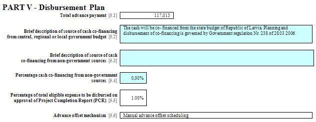 Latvijas valdība nodrošina līdzfinansējumu vismaz 15 procentu apmērā no projekta attiecināmajām izmaksām.
