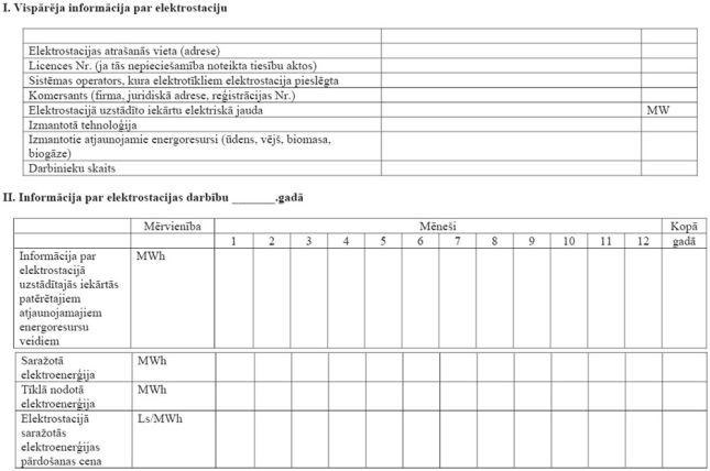 Elektrostacijas, kas elektroenerģijas ražošanai izmanto atjaunojamos energoresursus, gada pārskats