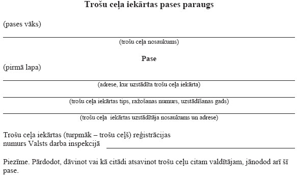 50. Inspicēšanas institūcija trošu ceļa pasē izdara ierakstu par trošu ceļa tehniskās pārbaudes rezultātiem un izsniedz valdītājam vai tā pilnvarotajam pārstāvim tehniskās pārbaudes protokolu. Ja inspicēšanas institūcija pārbaudē konstatē, ka trošu ceļš atbilst šajos noteikumos un piemērojamajos standartos noteiktajām prasībām, inspicēšanas institūcija uz pārbaudītā trošu ceļa redzamā vietā blakus trošu ceļa ražotāja datu plāksnei piestiprina bīstamās iekārtas drošības pārbaudes zīmi.