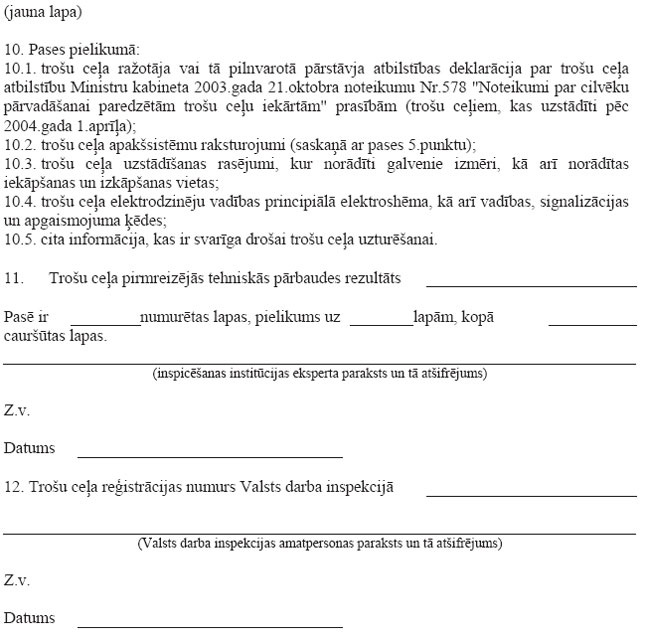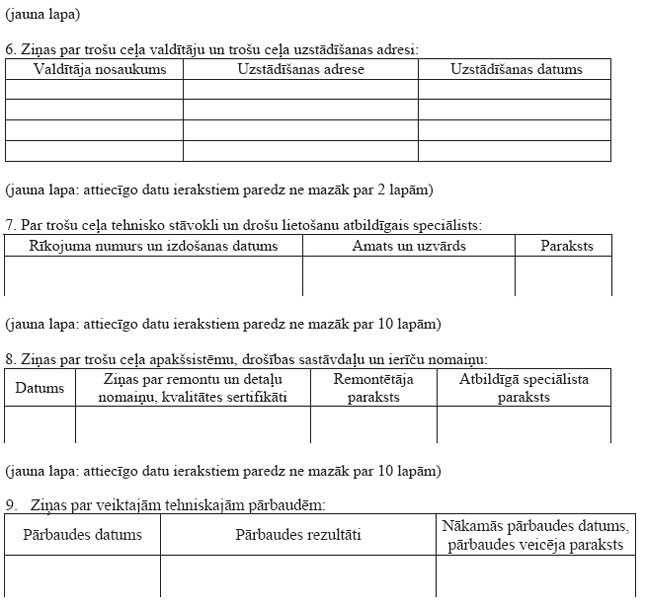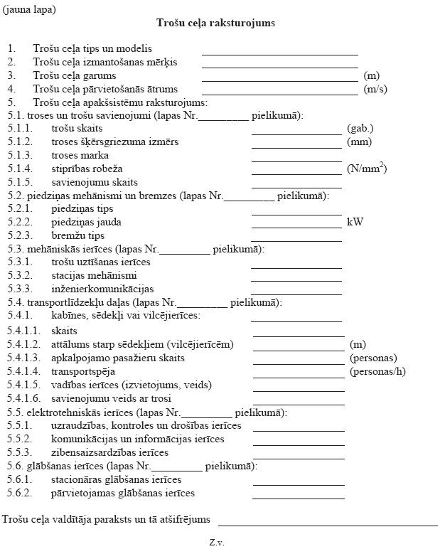 11. Katram trošu ceļam nepieciešama pase valsts valodā. Pasi konkrētam trošu ceļam (pielikums) aizpilda valdītājs.