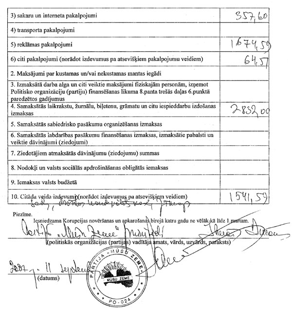 Par politiskās organizācijas iesniegto precizēto ikgadējās finansiālās darbības deklarāciju un precizēto vēlēšanu ieņēmumu un izdevumu deklarāciju