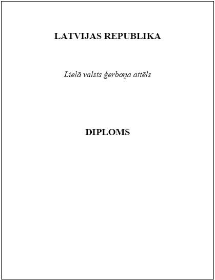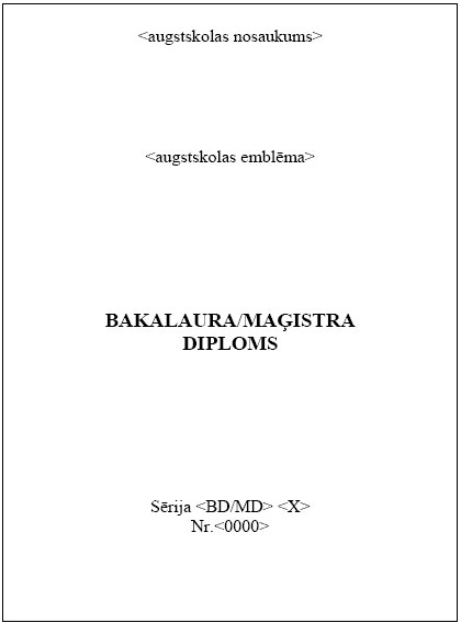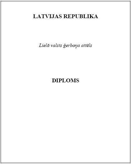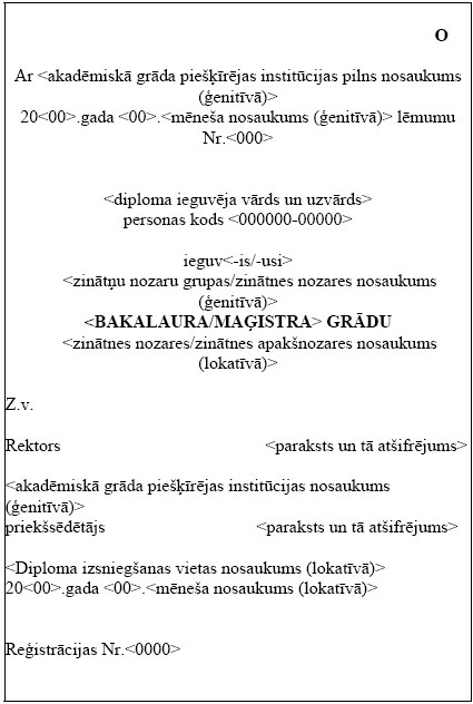 1. Diploma 1. un 2.lappusē teksts ir iespiests un identisks visos bakalaura/maģistra diplomos.