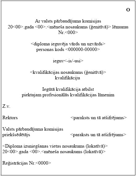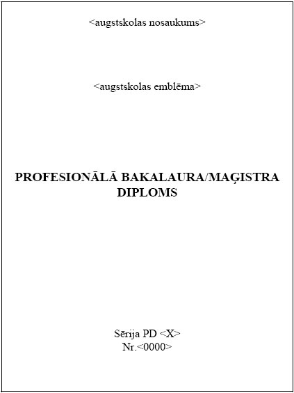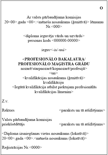 1. Diploma 1. un 2.lappusē teksts ir iespiests un identisks visos profesionālā bakalaura/maģistra diplomos.