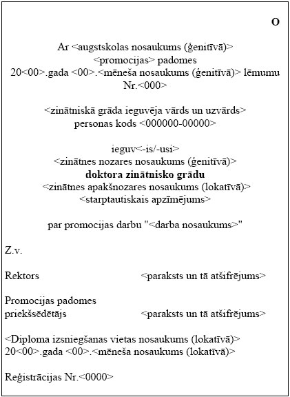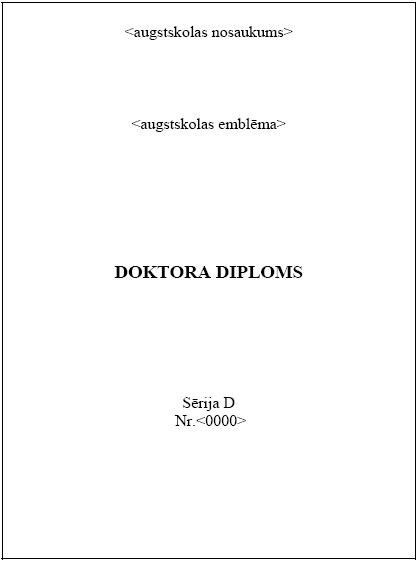 1. Diploma 1. un 2.lappusē teksts ir iespiests un identisks visos doktora diplomos.