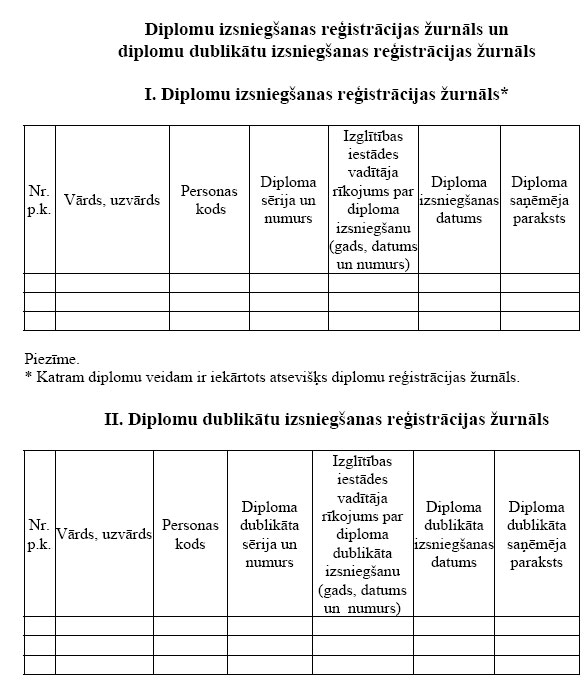 2.1. bakalaura diploms un maģistra diploms (1.pielikums);