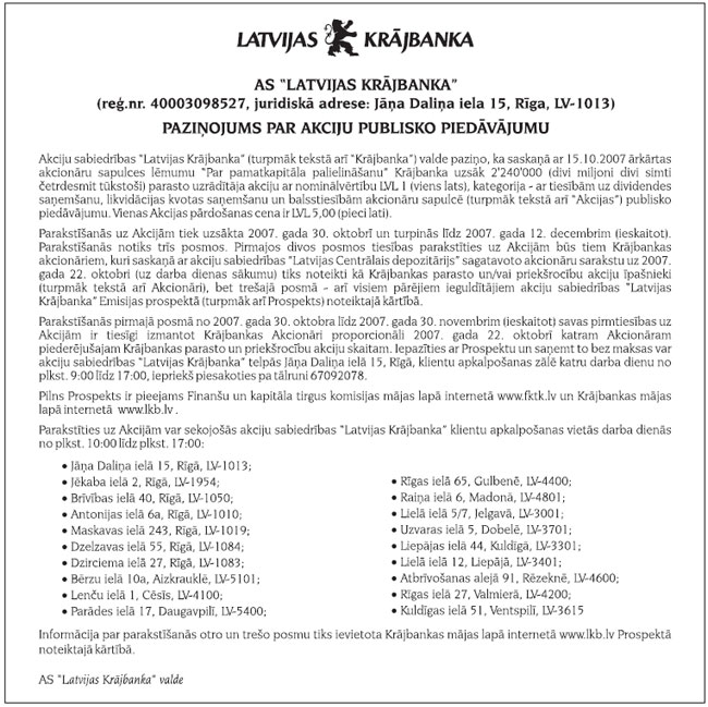 Akciju sabiedrība “Latvijas Nacionālais autopārvadātāju centrs” paziņo par akcionāru pilnsapulces sasaukšanu 2007.gada 26.novembrī pulksten 11 SIA “Voldemārs” telpās Rīgā, Skaistkalnes ielā 3. Darba kārtības jautājums: AS “Latvijas Nacionālais autopārvadātāju centrs “ darbības apturēšana.