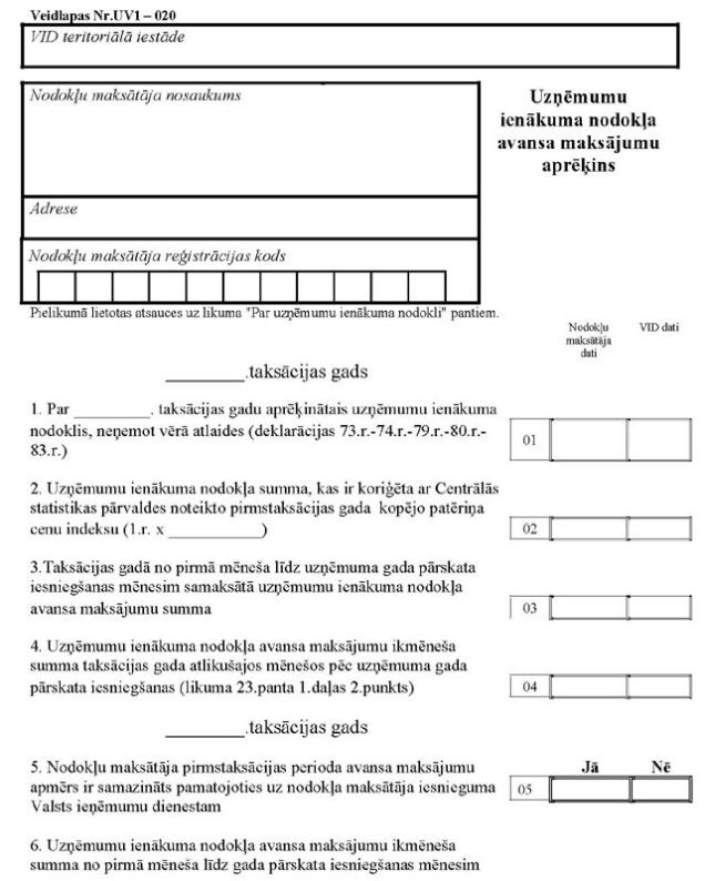 1.4. nosaka uzņēmumu ienākuma nodokļa avansa maksājumu aprēķinu aizpildīšanas kārtību.