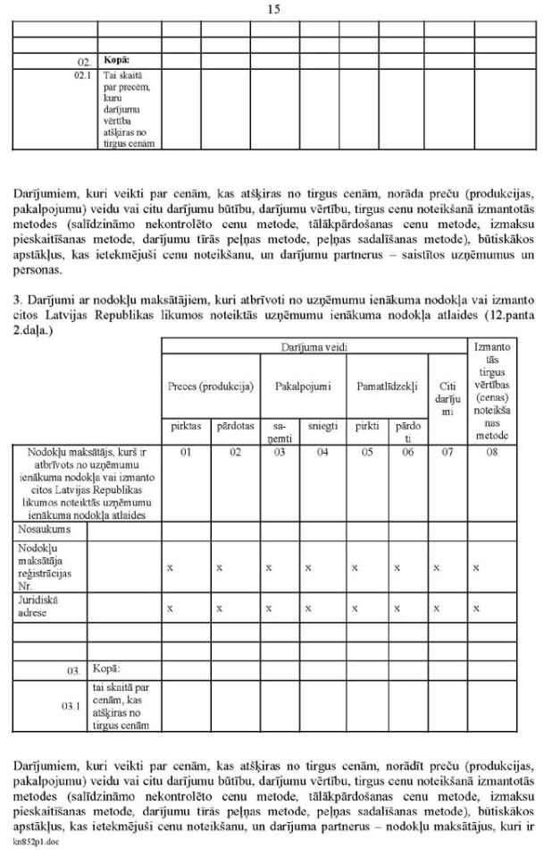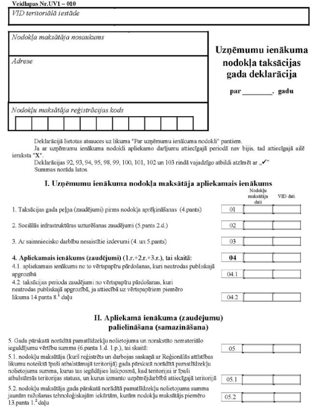 3.1. deklarācijas 1.rindā norāda peļņas vai zaudējumu apmēru pirms uzņēmumu ienākuma nodokļa aprēķināšanas, kas noteikts saskaņā ar Gada pārskatu likuma 11. un 12.pantu vai Kredītiestāžu likumu, Krāj-aizdevu sabiedrību likumu vai Apdrošināšanas sabiedrību un to uzraudzības likumu. Nerezidentu pastāvīgās pārstāvniecības deklarācijas 1.rindā norāda normatīvajos aktos noteiktajā kārtībā sastādītā peļņas vai zaudējumu aprēķinā uzrādīto peļņas vai zaudējumu apmēru pirms uzņēmumu ienākuma nodokļa aprēķināšanas;