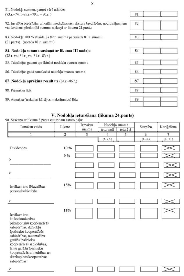 3.8. deklarācijas 71.rindā norādītā summa nedrīkst pārsniegt 70.rindā norādīto summu. Ja deklarācijas 70.rindas summa ir negatīva, zaudējumus konkrētajā taksācijas periodā nevar segt, un 71.rindā ieraksta "X";