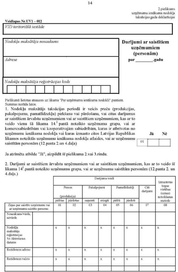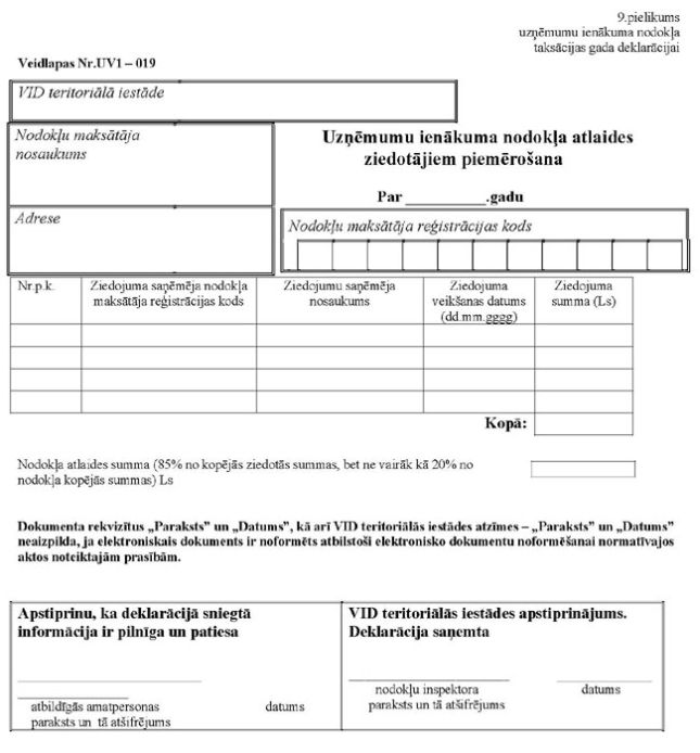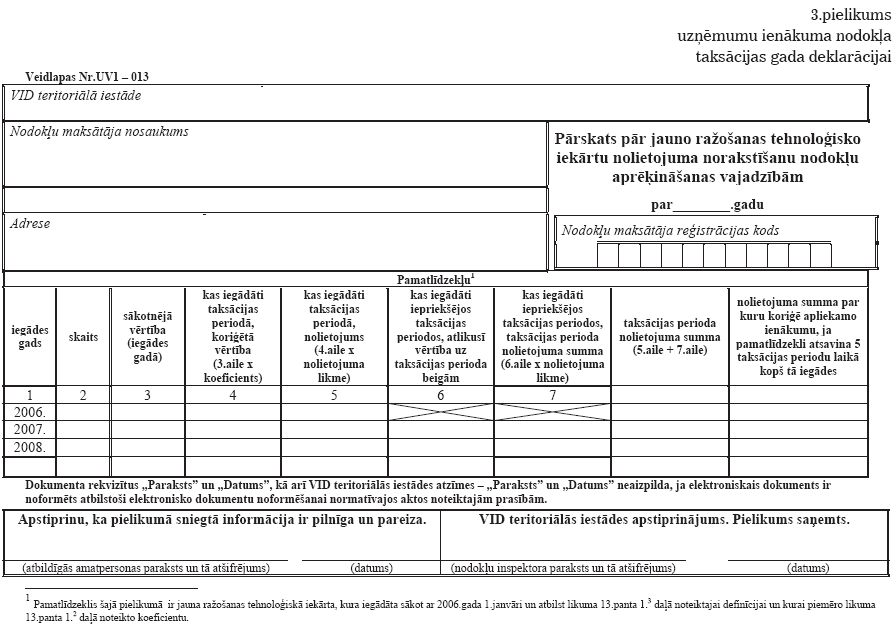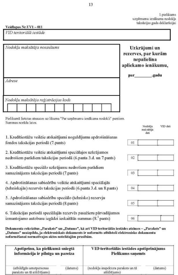 1.1. apstiprina uzņēmumu ienākuma nodokļa taksācijas gada deklarācijas veidlapas paraugu (1.pielikums);